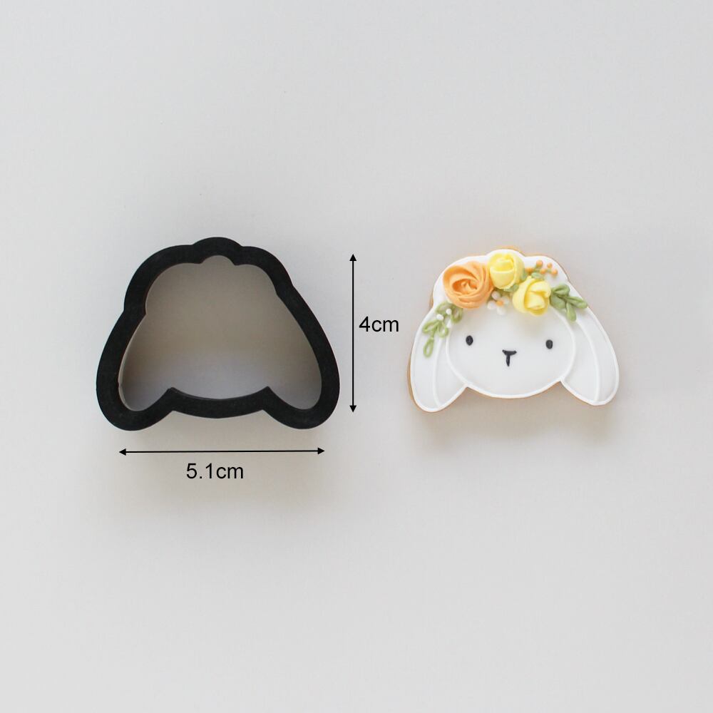 花かんむりを付けたうさぎのSHIROのクッキー型です。