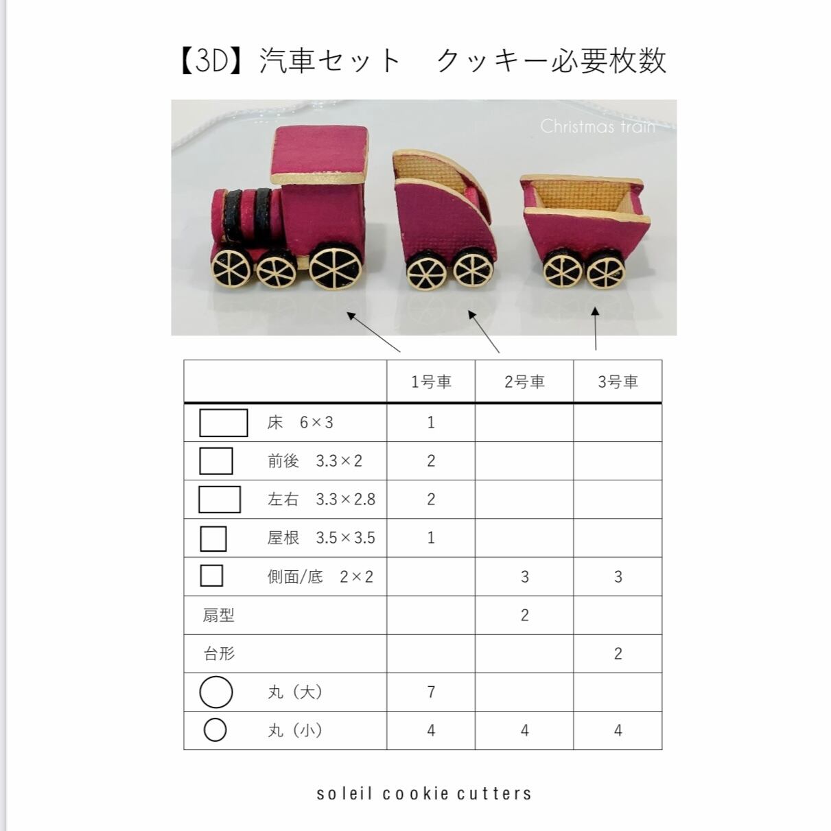 ◆【3D】立体の汽車が3両作れる、クッキー型のセットです。